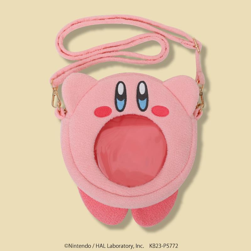 すいこみポーズのカービィが、ふわふわのポシェットになりました。