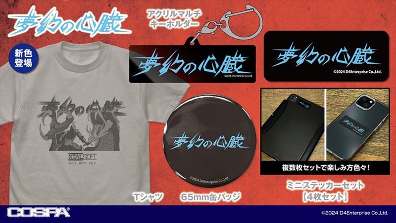 「夢幻の心臓」のタイトル画面とロゴをデザインしたTシャツ