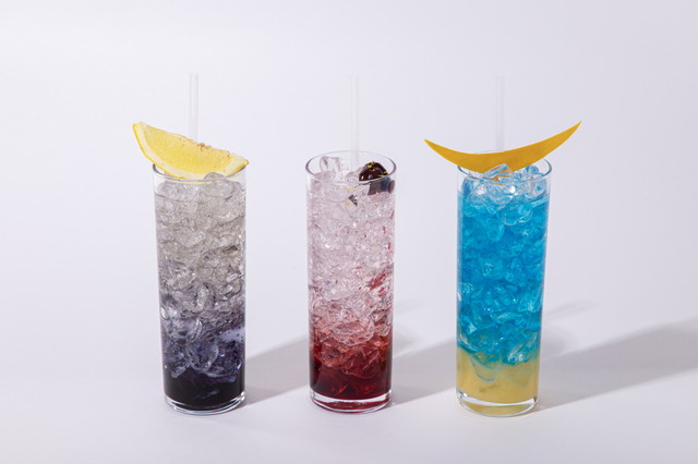左から、レオン・S・ケネディ、ダンテ、伊達政宗の3人をイメージしたドリンク。