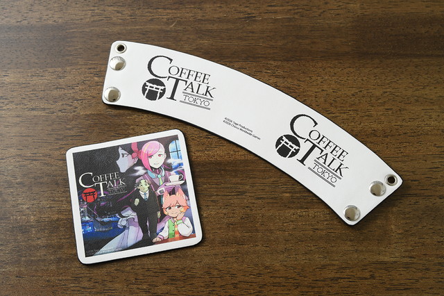 本作のロゴとキービジュアルをあしらったカップスリーブとコースターがセットになった