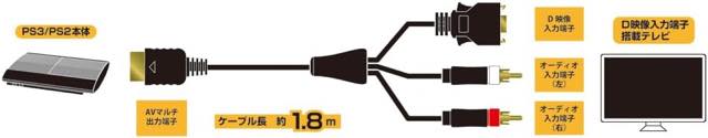 こちらの「(PS3/PS2用)D端子ケーブル<1.8m>」は、