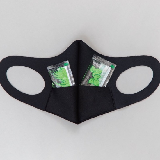 マスク内側のポケットに付属の蓄冷剤を冷やして入れることにより、