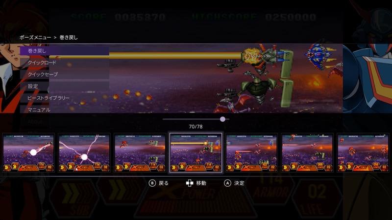 ゲーム本編はアーケードスタイルの横スクロールシューティング。