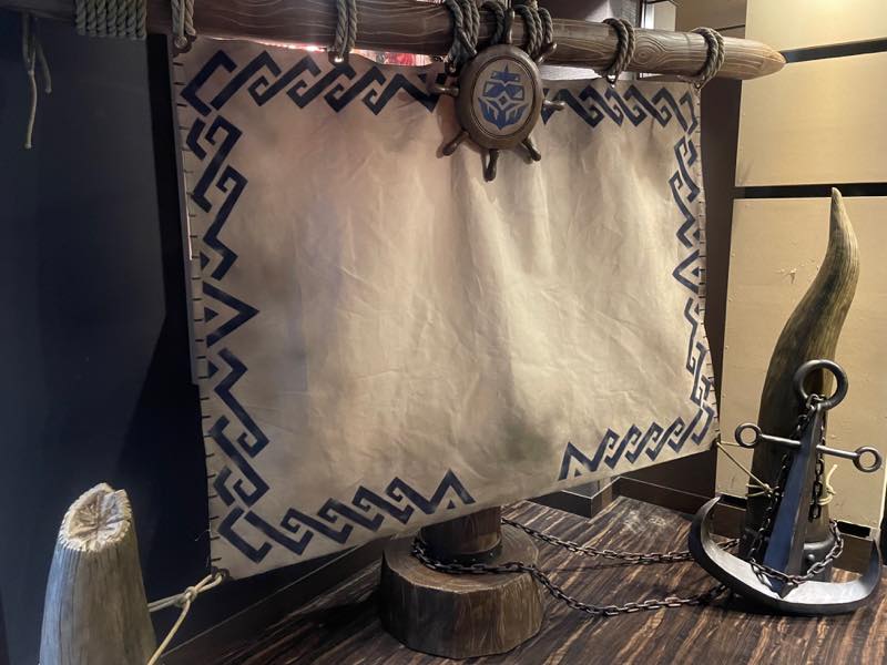 撮影スポットや武器、防具の設置に加えて店内はモンハンの世界を楽しめる内装で、