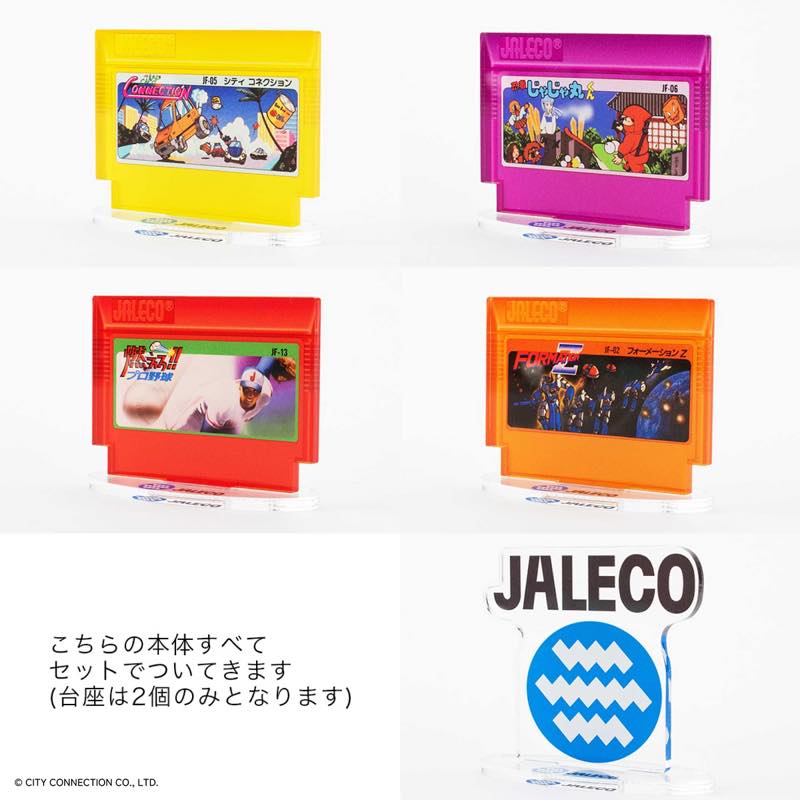 4種のゲームカセットデザインと往年のJALECO社ロゴを再現した