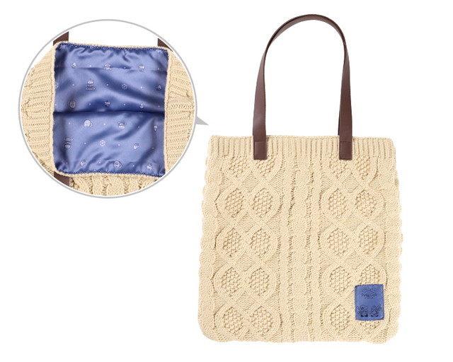 ケーブル模様のニットにWINTERアートの織ネームをあしらったバッグや、