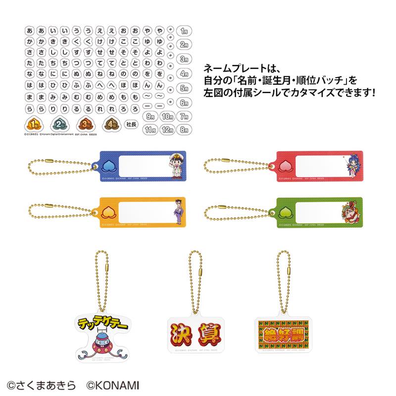 そのほか、プレーヤーアイコンに見立てた選べる4種のネームプレートと3種のチャーム、『桃太郎電鉄』にちなんだキュートなラバーコレクション、ゲームの順位が決定する「決算」にちなんだバラエティ豊かなステーショナリーと、いずれも『桃太郎電鉄』シリーズの魅力がつまった商品です。