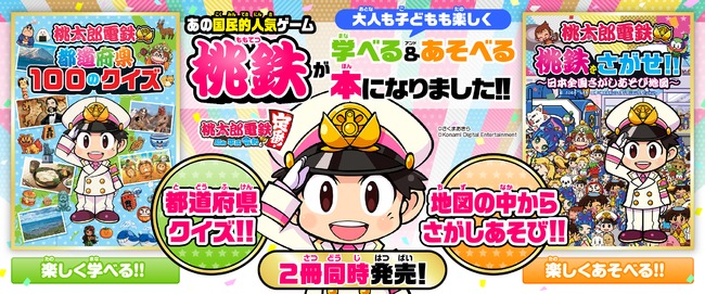 大人気ゲーム『桃太郎電鉄 ~昭和 平成 令和も定番!~ 』の学べるクイズ本と、探しあそび本の2冊が3月16日(水)に同時発売!