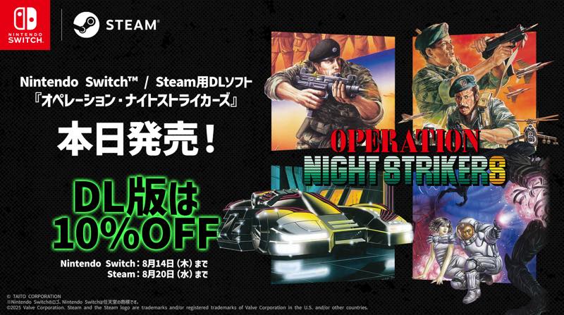 株式会社タイトーは、Nintendo Switch™ / Steam用ソフト『オペレーション・ナイトストライカーズ』、および関連商品を本日発売したことをお知らせします。