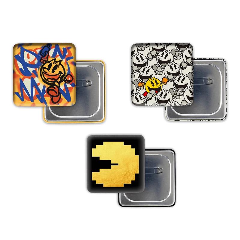 『PAC-MAN』誕生の45周年を記念して、本展示ではアート作品だけでなくオリジナルグッズも販売します。アート作品と同じデザインをあしらった缶バッジや、『PAC-MAN』のシルエットが映えるキャンバストートバッグに加え、下記掲載アイテム以外のオリジナルグッズを複数ご用意しております。