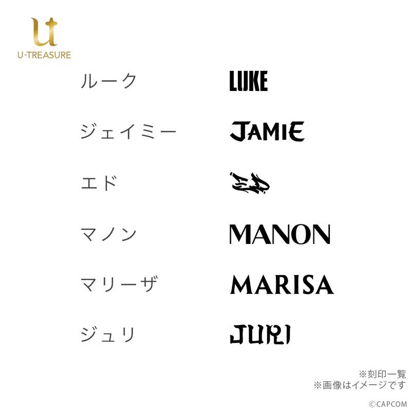 キャラクターのイメージカラーと名前の刻印をあしらったデザインの