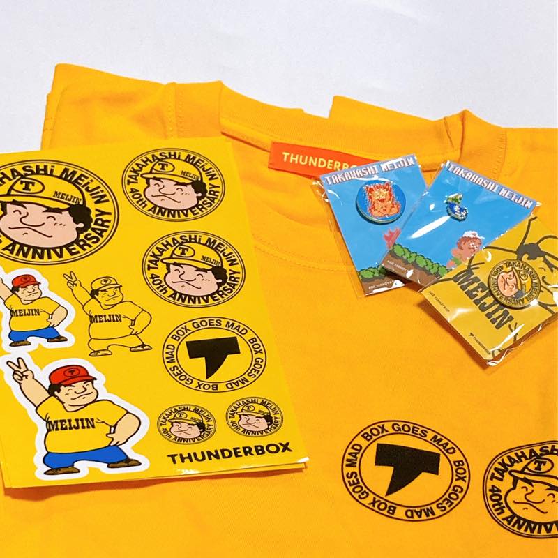 ・高橋名人の名人活動40周年記念!ファミコン戦士にはたまらないデザインのTシャツやピンズなど、THUNDERBOXと高橋名人のコラボアイテムが本日発売に!