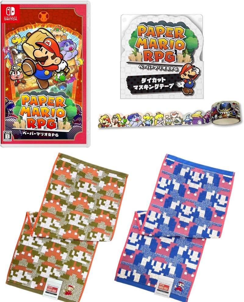 ペーパーマリオRPG -Switch +マリオフェイスタオル2種セット(マリオパターン・エンドパターン)【Amazon.co.jp限定】ダイカットマスキングテープ 同梱