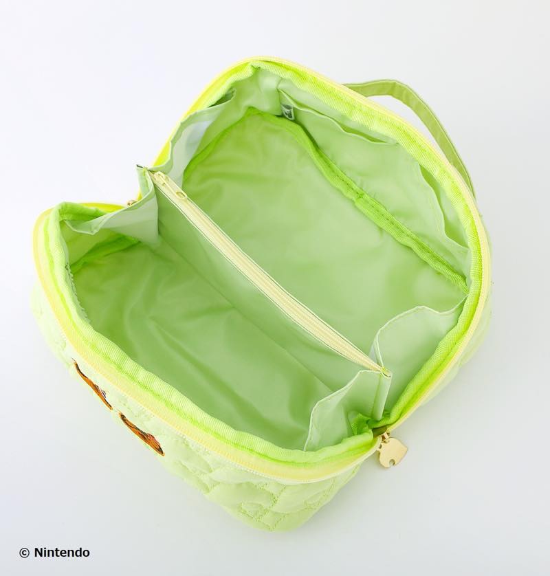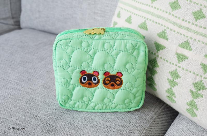 『あつまれ どうぶつの森』らしい葉っぱ柄のキルティングがポイントの春色カラーのポーチは、まめきち&つぶきちの刺しゅうをあしらい、180度にガバッと開くポーチと日常使いしやすいスクエアポーチの形・色違いで展開します。
